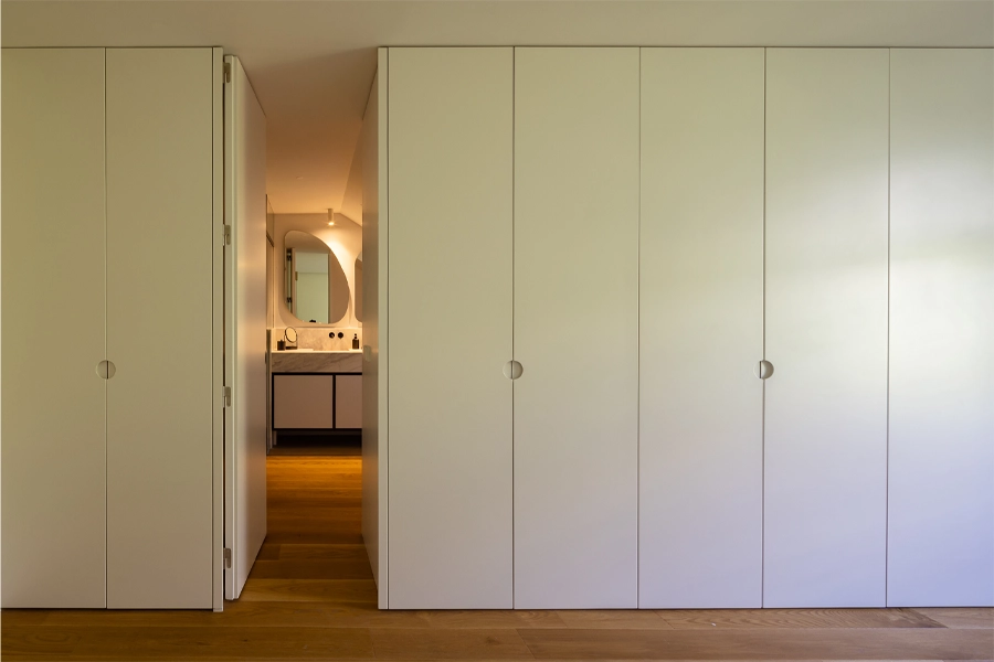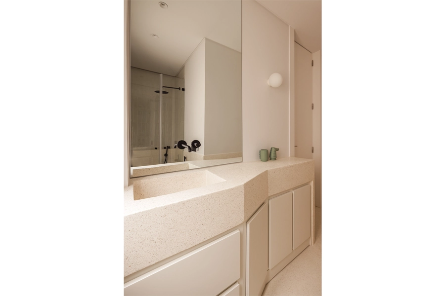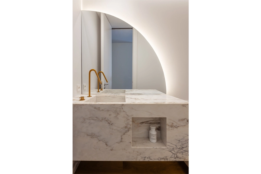 Uma casa mais sóbria para o exterior, pretende abrir-se mais para a esfera privada do dia-a-dia a tardoz, com o seu jardim que afunila a vista para a Foz do Rio Tejo ou as escadas que formam um anfiteatro para nos sentarmos a contemplar.